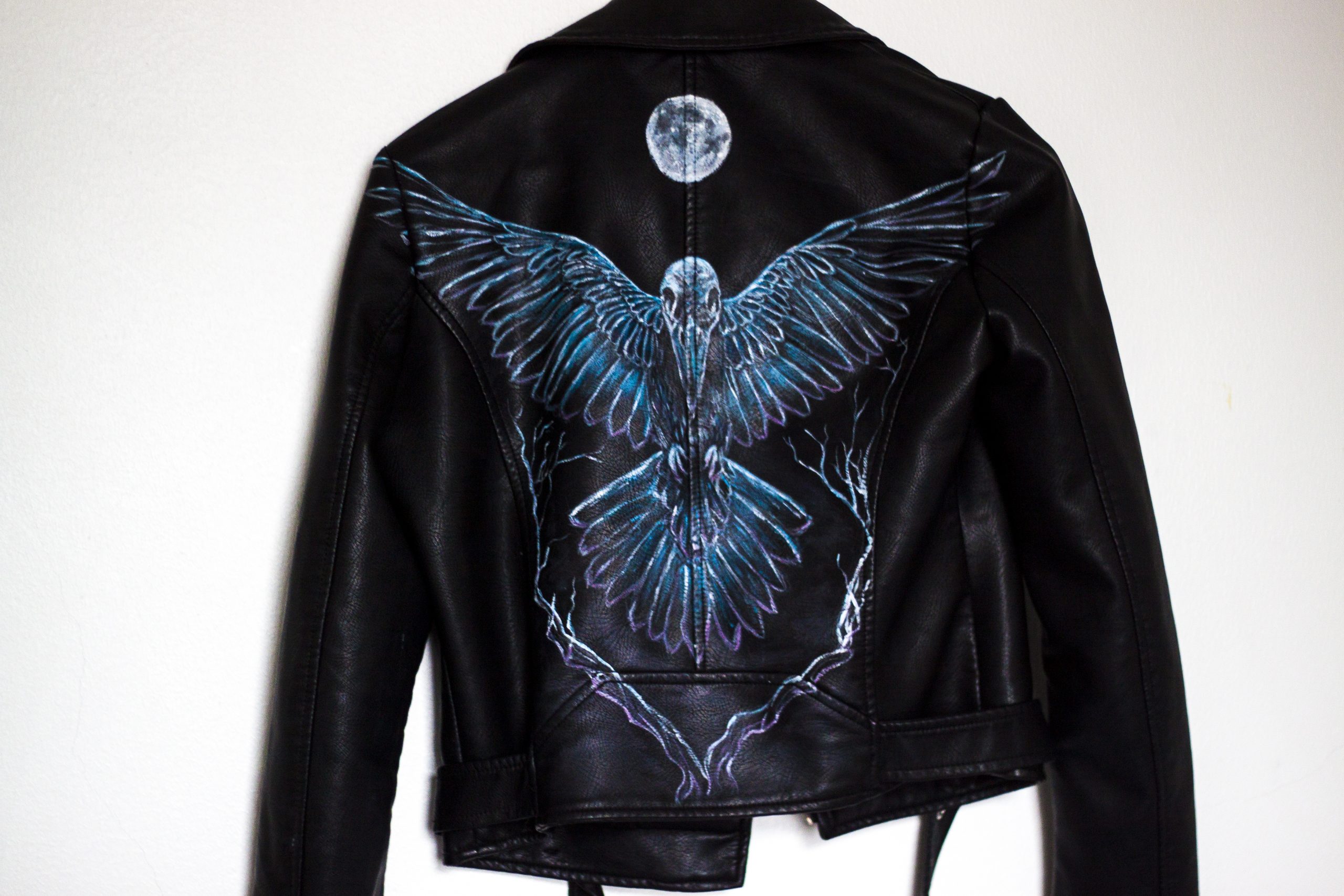 Kustomoitu nahkatakki, akryylimaalaus