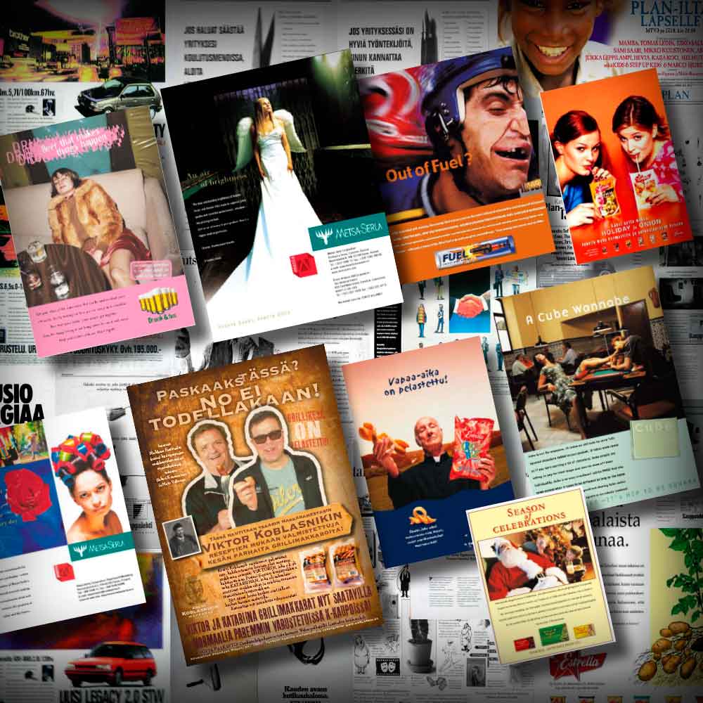 Mainosten visuallisen ilmeen suunnittelut ja copywrite-työ
